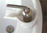 | 上図は水栓は96(ビスケット)で、洗面器はK-2189-1-0ホワイトになります | 水は陶器とニッケルの部品の間から出ます | ||